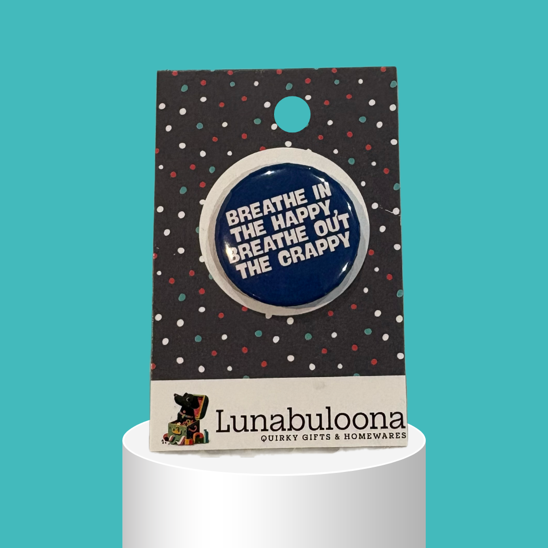 “Breathe In The Happy” Funny Self Care Pin Badge