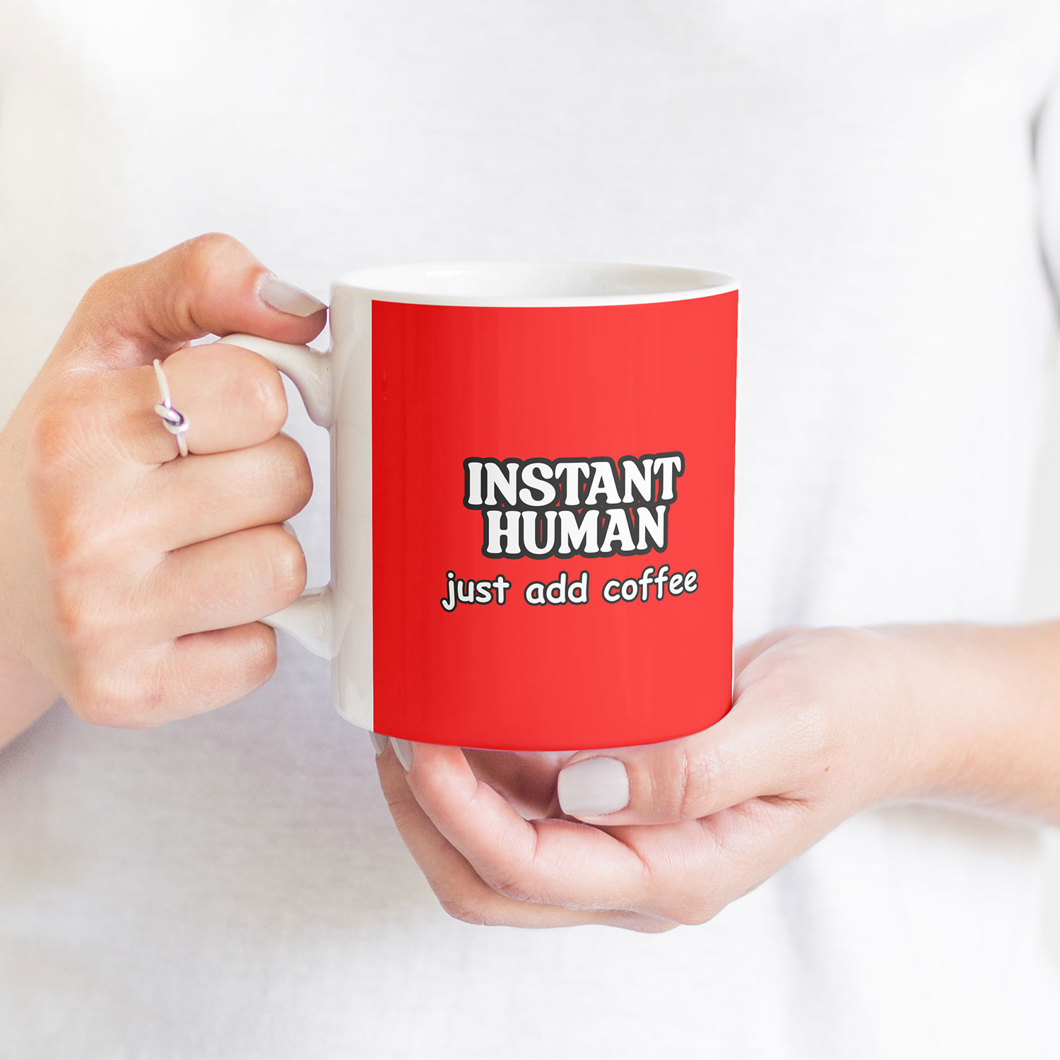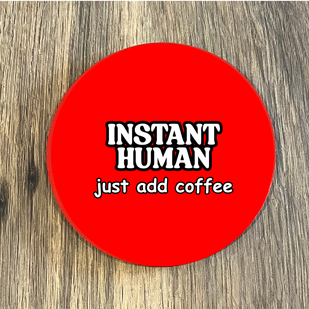 “Instant Human, Just Add Coffee” Funny Coaster – 9x9cm Cork Backed